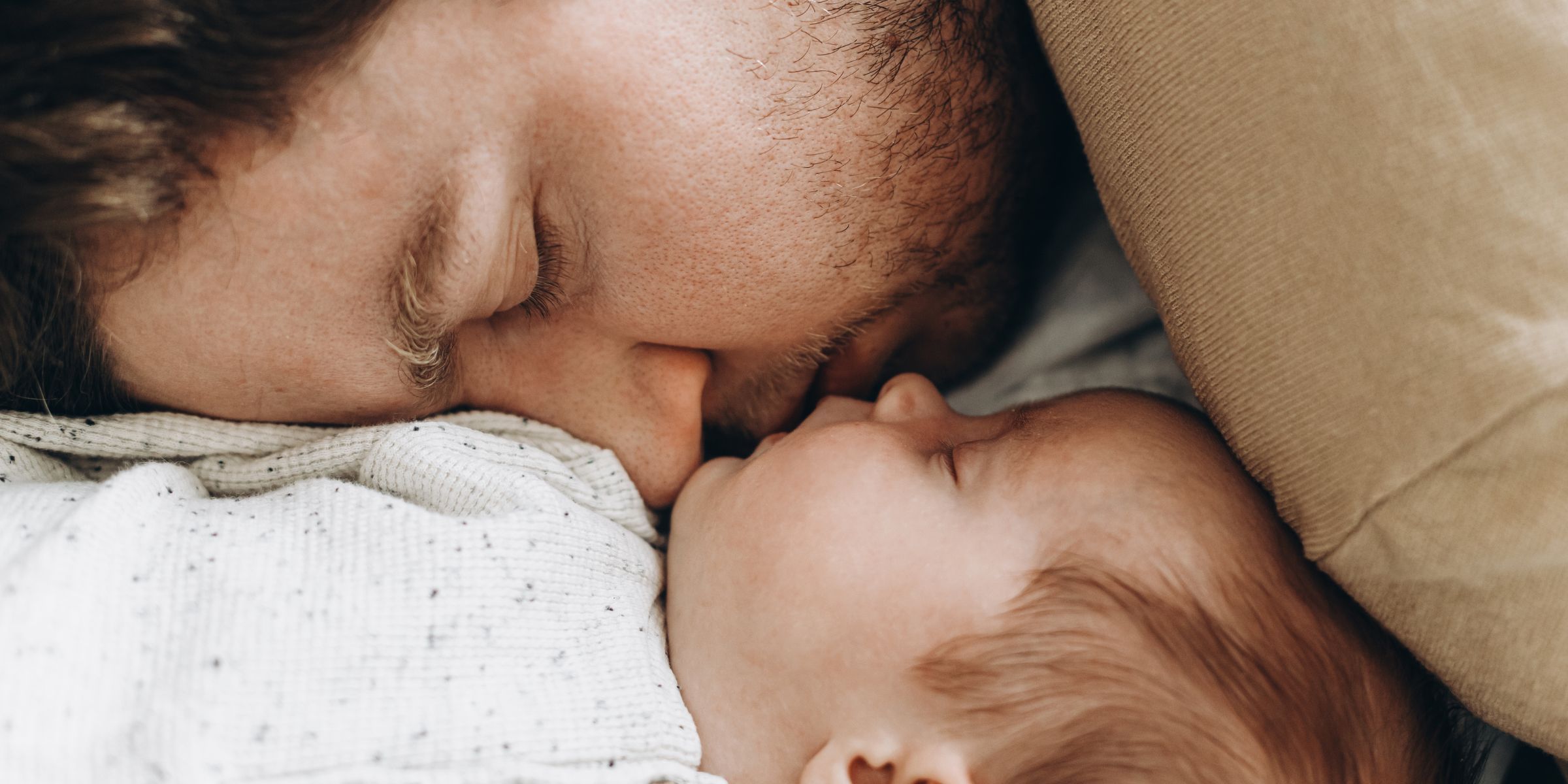 Y al entrar en el salón, me pareció estar viendo cosas: dormido en el sofá, con la cabeza echada hacia atrás y los brazos rodeando a un recién nacido, estaba mi esposo.