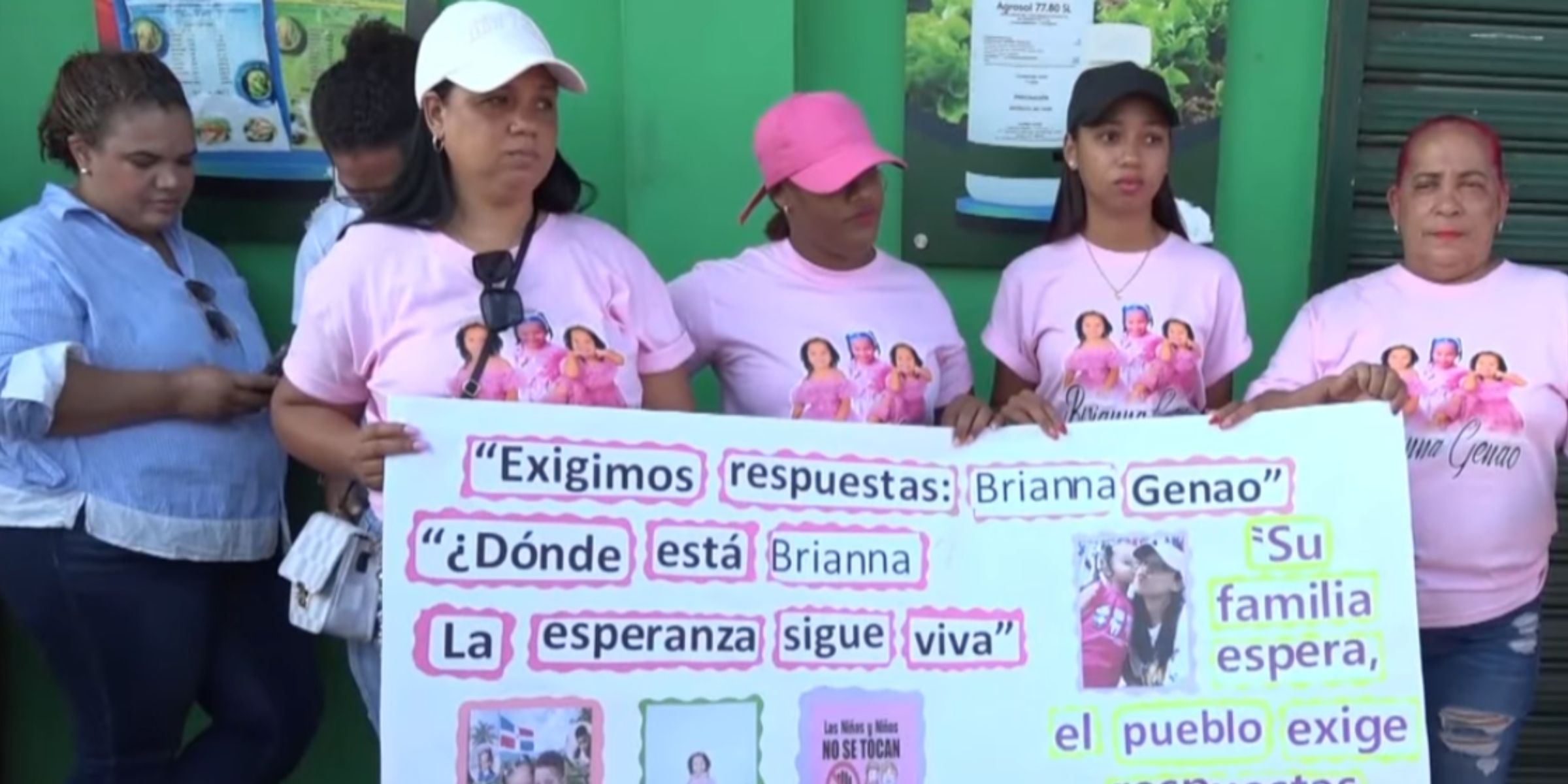 Personas en la marcha llevando un cartel que pide justicia por la desaparición de Brianna Genao | Fuente: YouTube/CDN 37