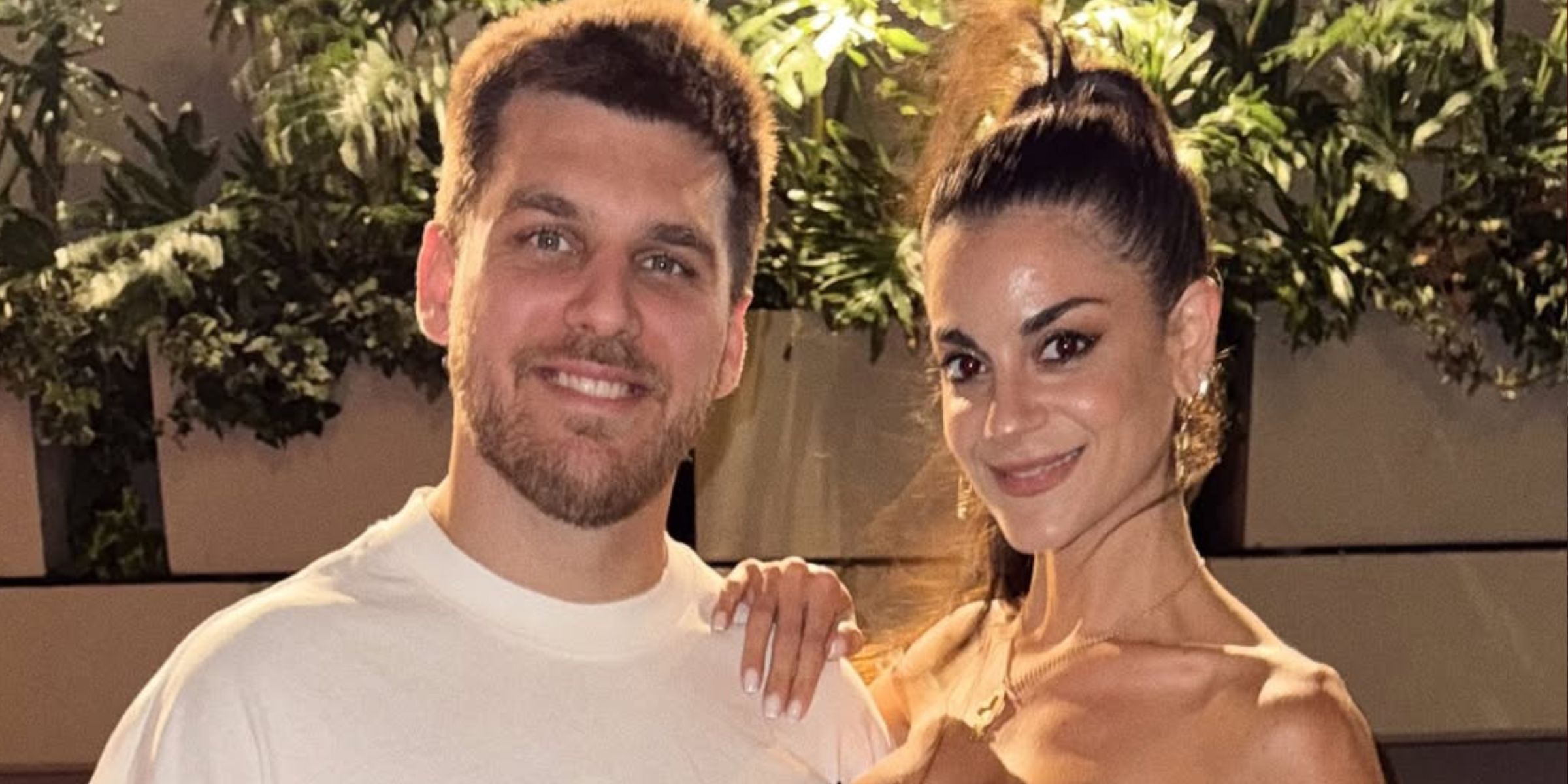 Para la ocasión, ambos eligieron looks elegantes en tonos neutros. Emily Lucius llevó un vestido blanco minimalista con breteles finos y una silueta simple de caída suave. Completó el estilismo con el cabello largo y suelto, peinado con raya al medio, y un maquillaje de apariencia natural.